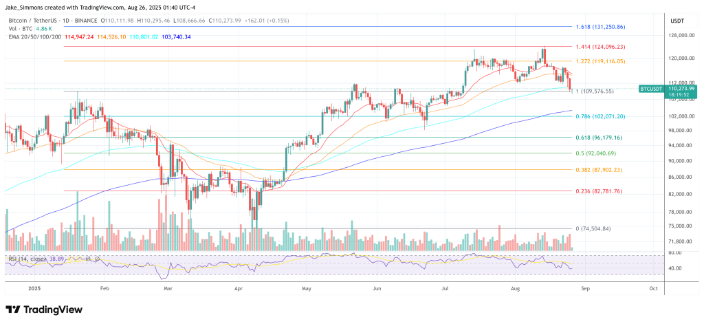 Cook, a Biden appointee, was reconfirmed in 2023 to a term running to January 31, 2038, and—as a member of the Board of Governors—holds a permanent vote on the FOMC. As the headlines hit Asia and Europe overnight, Bitcoin slipped alongside a wobbly dollar and US rates curve. At press time, BTC traded around $110,137, down roughly 2.4% on the session, after an intraday low at $108,666.