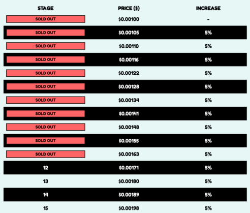 It’s a quick presale that only runs from July 28 to August 27, and features 15 stages of price increases. The token’s value grows by 5% at each stage, making it crucial that you get in as early as you can.