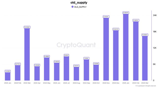 In a quick-take post on the CryptoQuant platform, a market expert with the username OnChainSchool reported that old dormant BTC has been moving since the beginning of 2025. Presently, more than twice as much long-dormant Bitcoin has been moved in the first three months of 2025 when compared to the same time period in 2024.